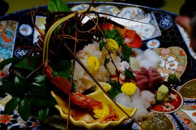 ご飯は圧巻で、夕ご飯には大皿に盛られたお刺身が出てきました。伊勢海老など、どれも活きがいい感じでおいしかったです。