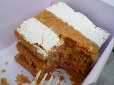 正方形で、ちょっと大きめですが、パイ生地がとてもサクサクして、クリームもおいしくて、