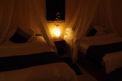 お風呂も広かったですが、シャンプー・コンディショナーが壺に入ってるのをすくって使うので使いづらかったのと、一人がシャワーを浴びると二人目は湯が出なくなってしまうのが難点でした。スタッフの方はとても親切で、アンコールワット観光の際にトゥクトゥクチャーターを紹介していただきました。