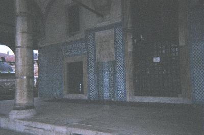 リュステムパシャ・ジャミィの外観。外壁にもイズニック・タイルがたっくさ...