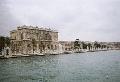 ボスポラス海峡から見たドルマバフチェ宮殿。この宮殿のインテリアはほんと...
