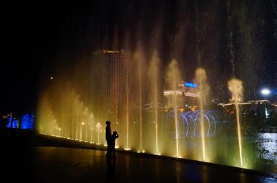 夜は秋水広場へ向かう。目当ては噴水ショー(「音楽噴泉」)開始時間は8:...