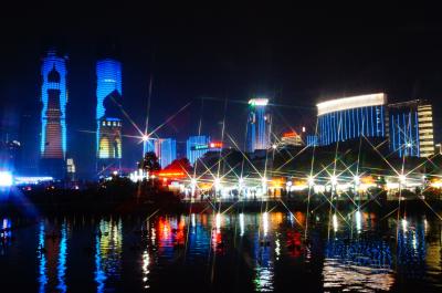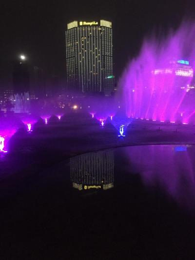 夜は秋水広場へ向かう。目当ては噴水ショー(「音楽噴泉」)開始時間は8:...