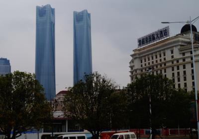 バスで市内へ向かう。特に問題はなし。途中で見かけたこのツインタワーはと...