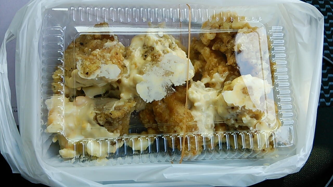 大隅半島の財部駅内にある桂庵さんはお客さんから教えてもらって2年ぐらい前から定期的にいってます。いつもは二人以上でいきますが、先日は初めて一人でいきました。チキン南蛮を頼んだところ、とてもじゃありませんが一人で食べきれませんでした。泣く泣く持ち帰りできますか?と聞いたらパックをくれたので詰めたら7個ぐらいでした。ということは7個ぐらいは食べたので14個ぐらいはチキンがあったのかなという感じです。うどんとご飯もついて1000円です。お店に行くときはお腹ペコペコにしていかないといけません。