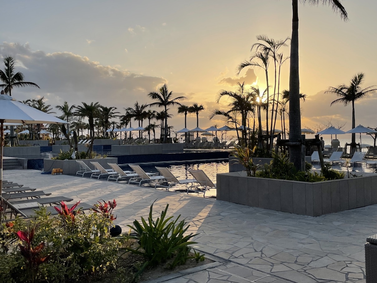 雰囲気などはハワイと全く違いますが、新しいので綺麗で清潔ですし、高台にあるサンセットウィングのお部屋からのビューは最高です。ハワイのハレクラニからはサンセットは(私が行く7月は)楽しめませんが、沖縄のハレクラニからは最高のサンセットが堪能できます。