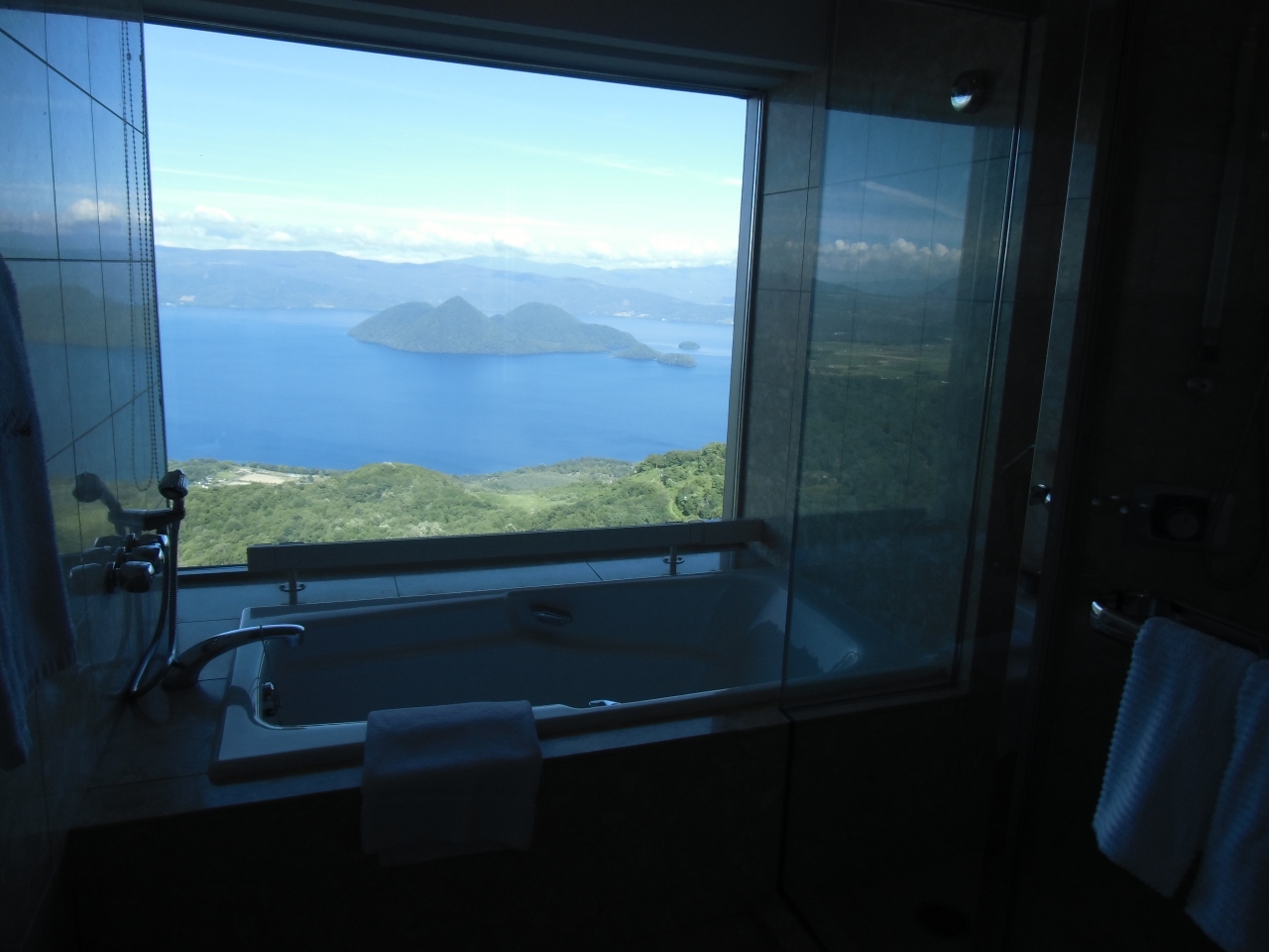 お部屋の温泉も広くて洞爺湖や花火を眺めながらの入浴は最高でしたが、屋上の天空露天風呂が素晴らしかった!!案内のスタッフさんが、天下を取った気分になりますとおっしゃってましたが、正にその通りの気分が味わえる景色です。