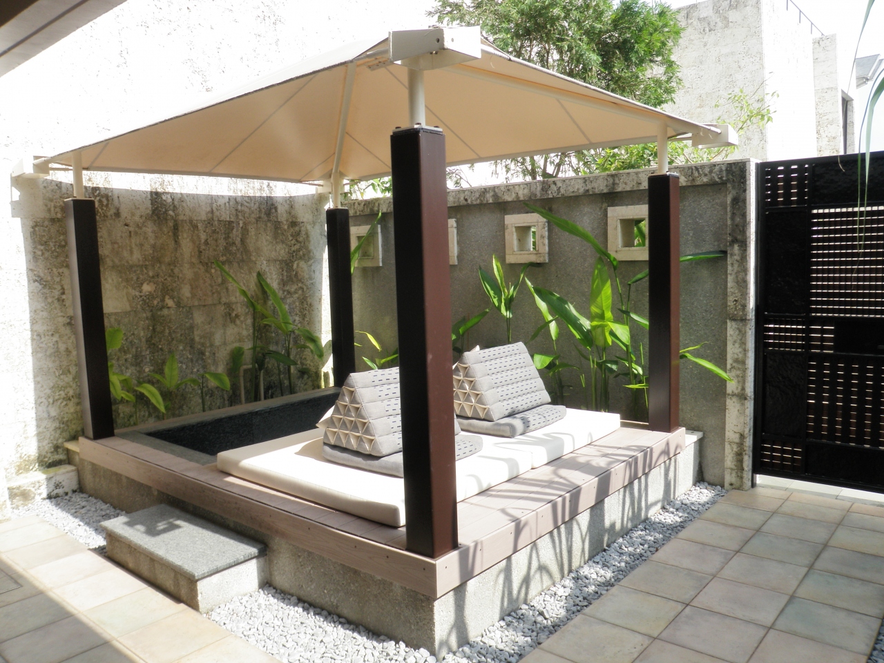 お部屋90平米、プライベートプール25平米、デイベッドやサウナも付いていて、