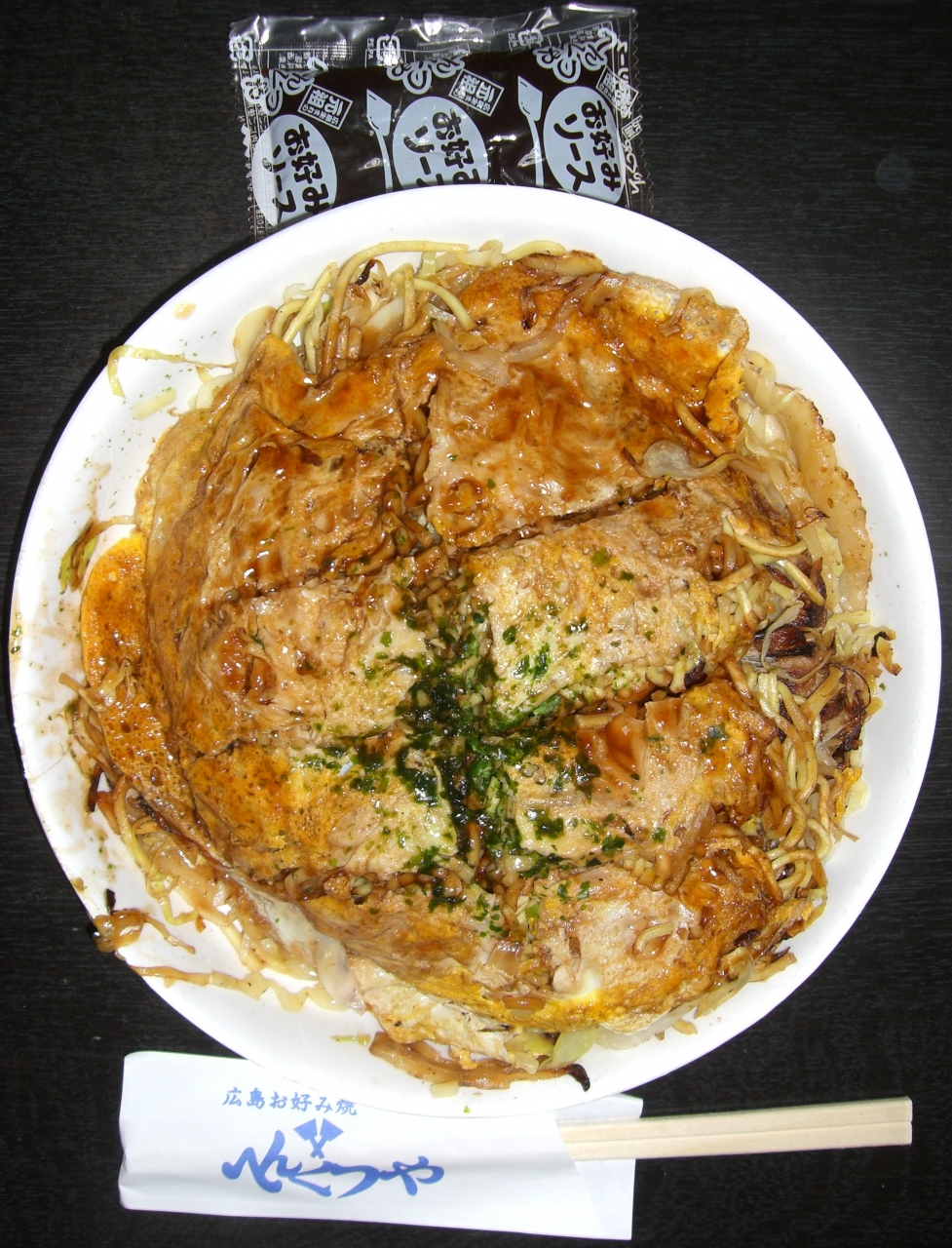 容器もお好み焼きの大きさピッタリになっているので、カバンに縦に入れて帰ってきたのですが、ご覧の通りほとんど崩れていません。
