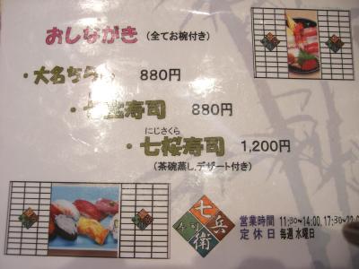 ?「七宝(しっぽう)寿司」880円