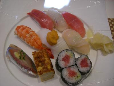にぎり七貫と鉄火巻き、厚焼玉子、これにみそ汁と茶碗蒸しとデザート(この日はバニラと抹茶のアイス)が付きます。
