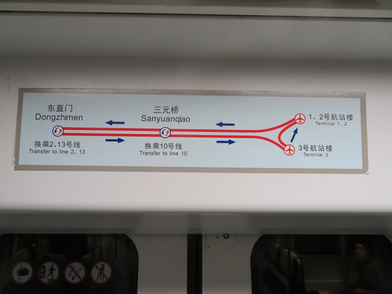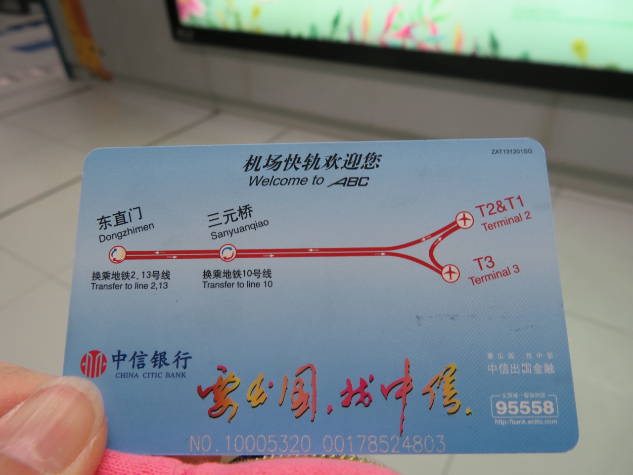 グレートウォールシェラトン北京ホテル最寄駅の農業展覧館駅から三元橋駅でエアポートエクスプレスに乗り換え。