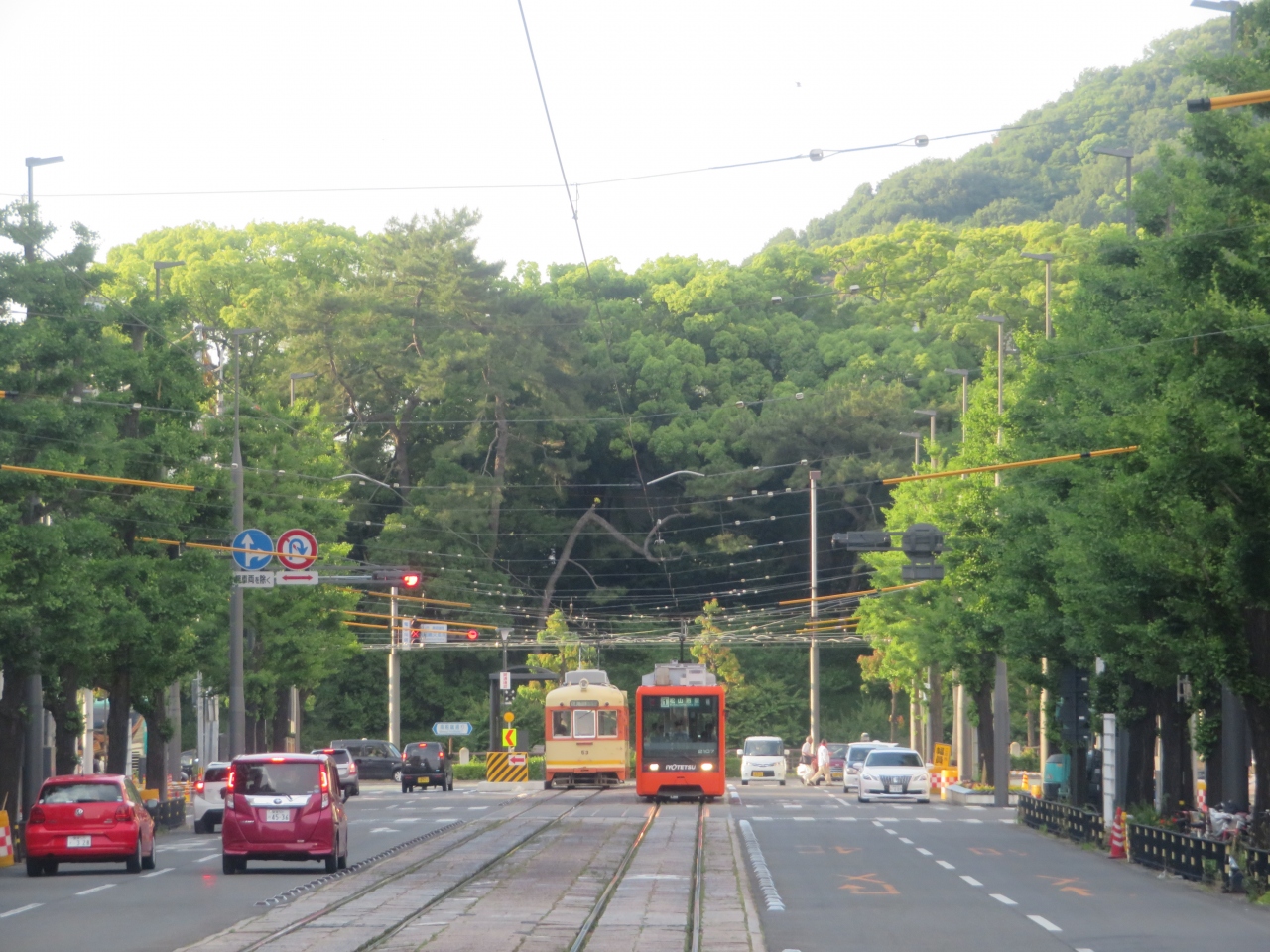 たまたま飛び乗った電車が昔ながらの車体で、新しい車体も好きなのですが私はこの昔からの電車が、おおぉ~ちんちん電車!!と思わせてくれ好きですね。