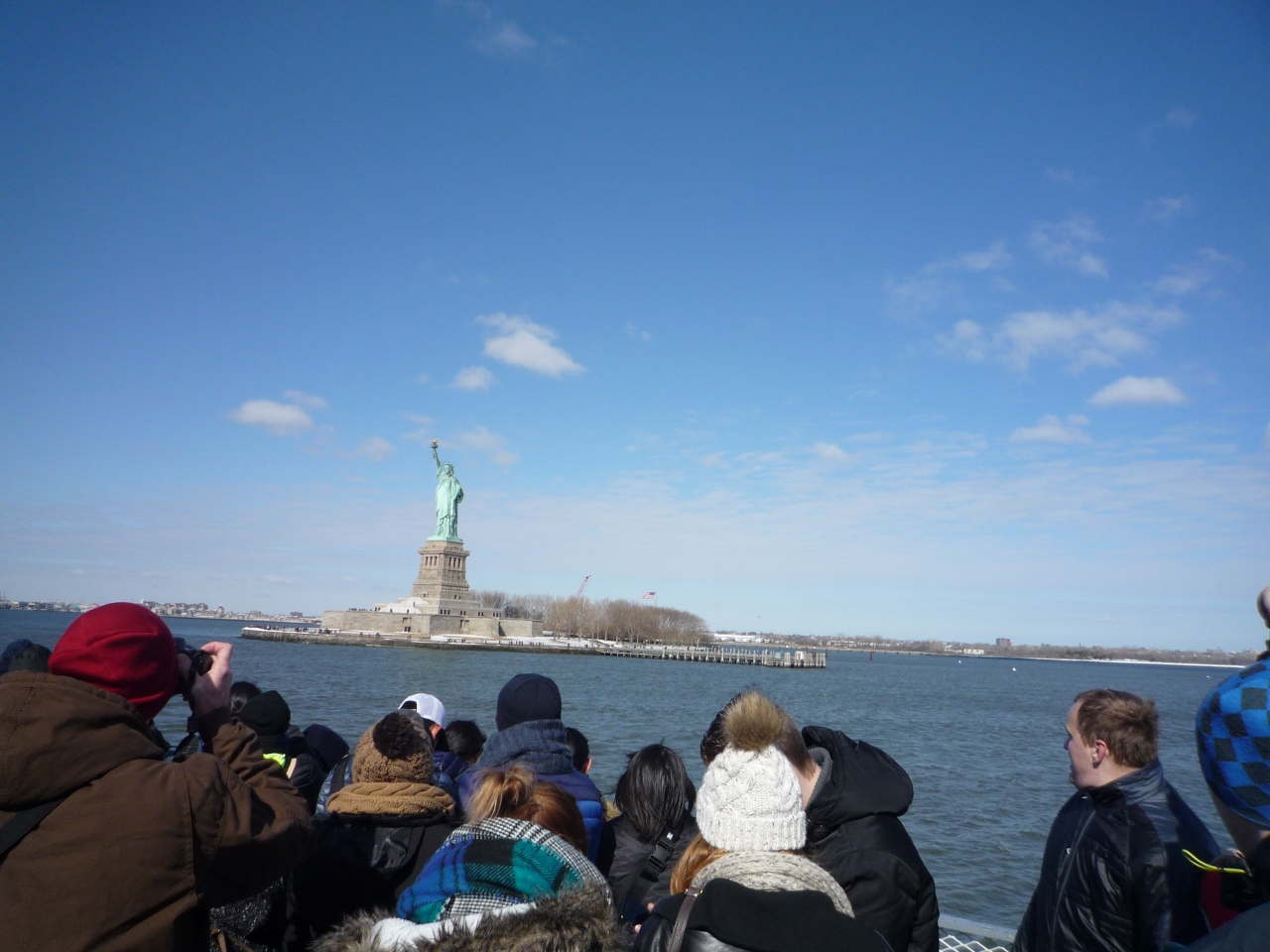 船は3階のデッキの右側がオススメで、離れ行くマンハッタンと迫り来る自由の女神が見れて興奮します。