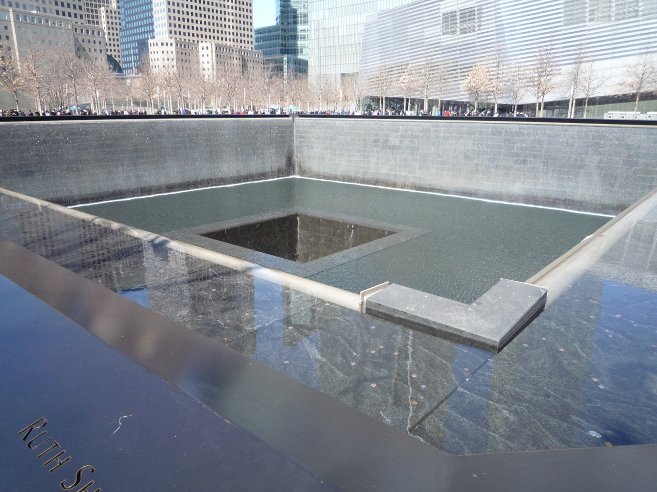 今回は、新しいWTCもできており、以前更地だった場所には2つのプールが建設され、プールの石枠には、このビルに突っ込んだ飛行機に搭乗され亡くなられた犠牲者の名前が彫られていました。