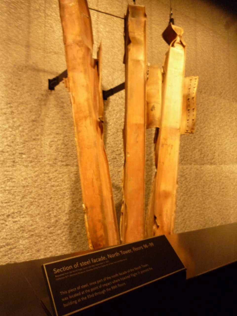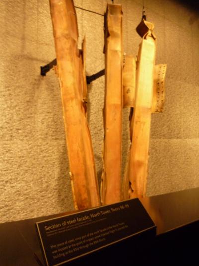 中には、ツインタワーの崩壊で残った階段や支柱、焼け焦げた消防車の展示が。