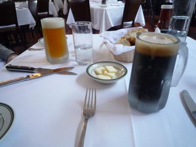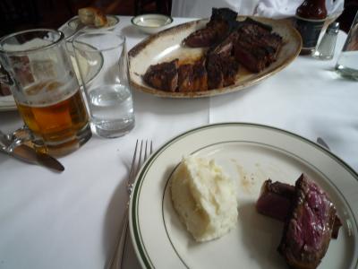 私たちはポータハウス・ステーキ(2人分)とポテト、ビールを注文。