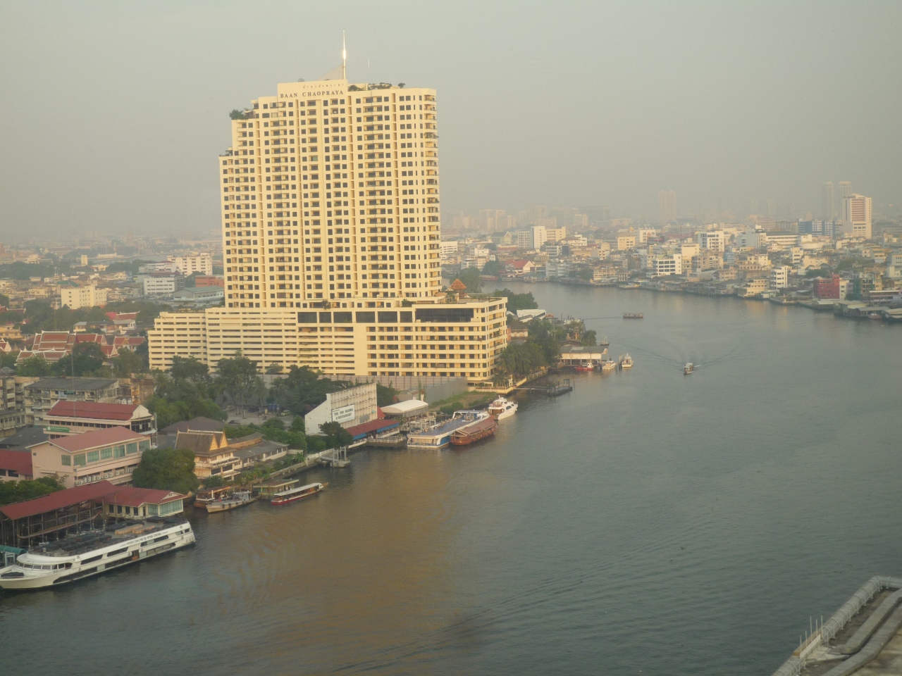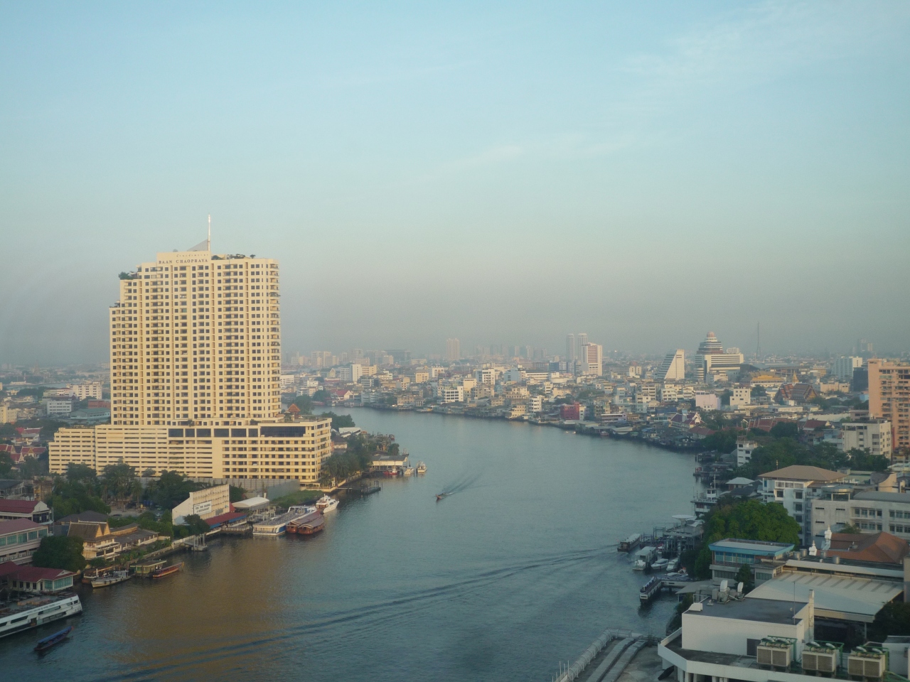 ・朝、カーテンを開け、チャオプラヤ川を眺める。