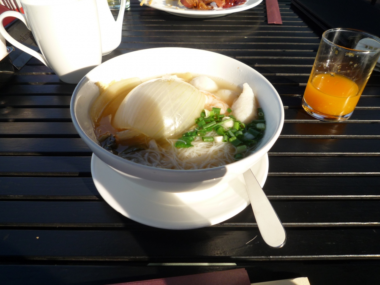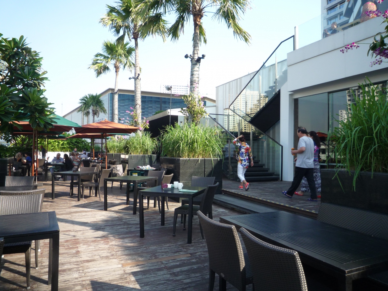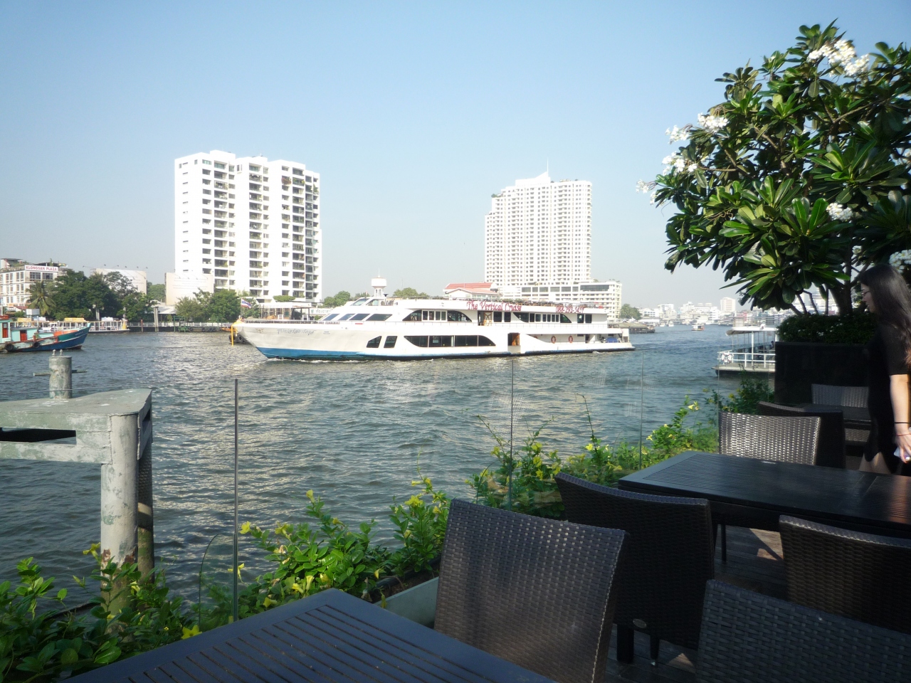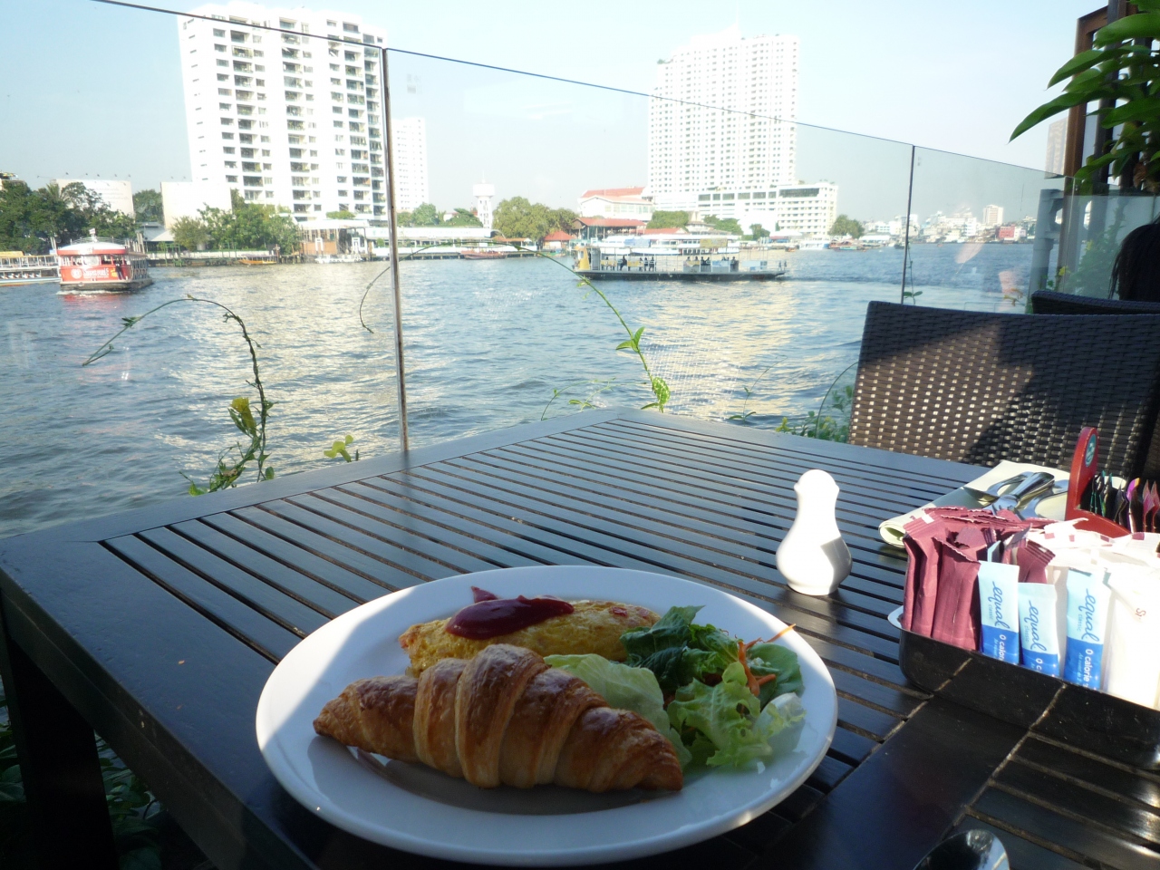 ・フィーストのアウトサイドでチャオプラヤ川を眺めながら朝食をとる。