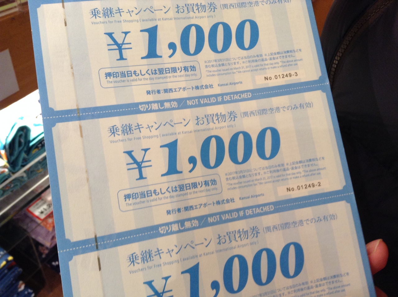 運賃1,950円/片道で3,000円のお買い物券(関空のレストランやお土産屋さんで使えるもの)が貰えるのです。