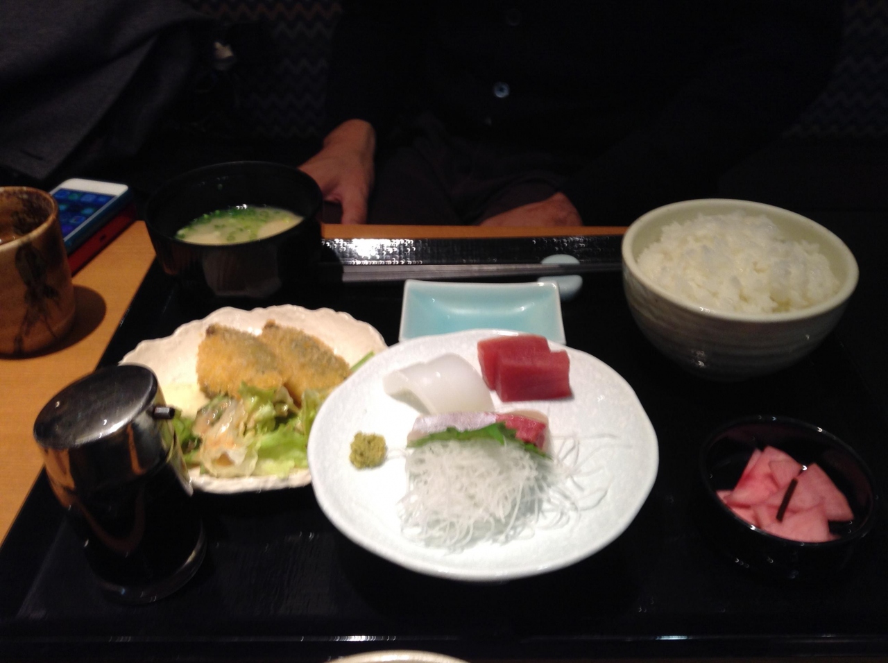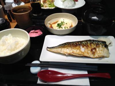 私は鯖の焼き魚定食、Y様は刺身とアジフライの定食を注文。