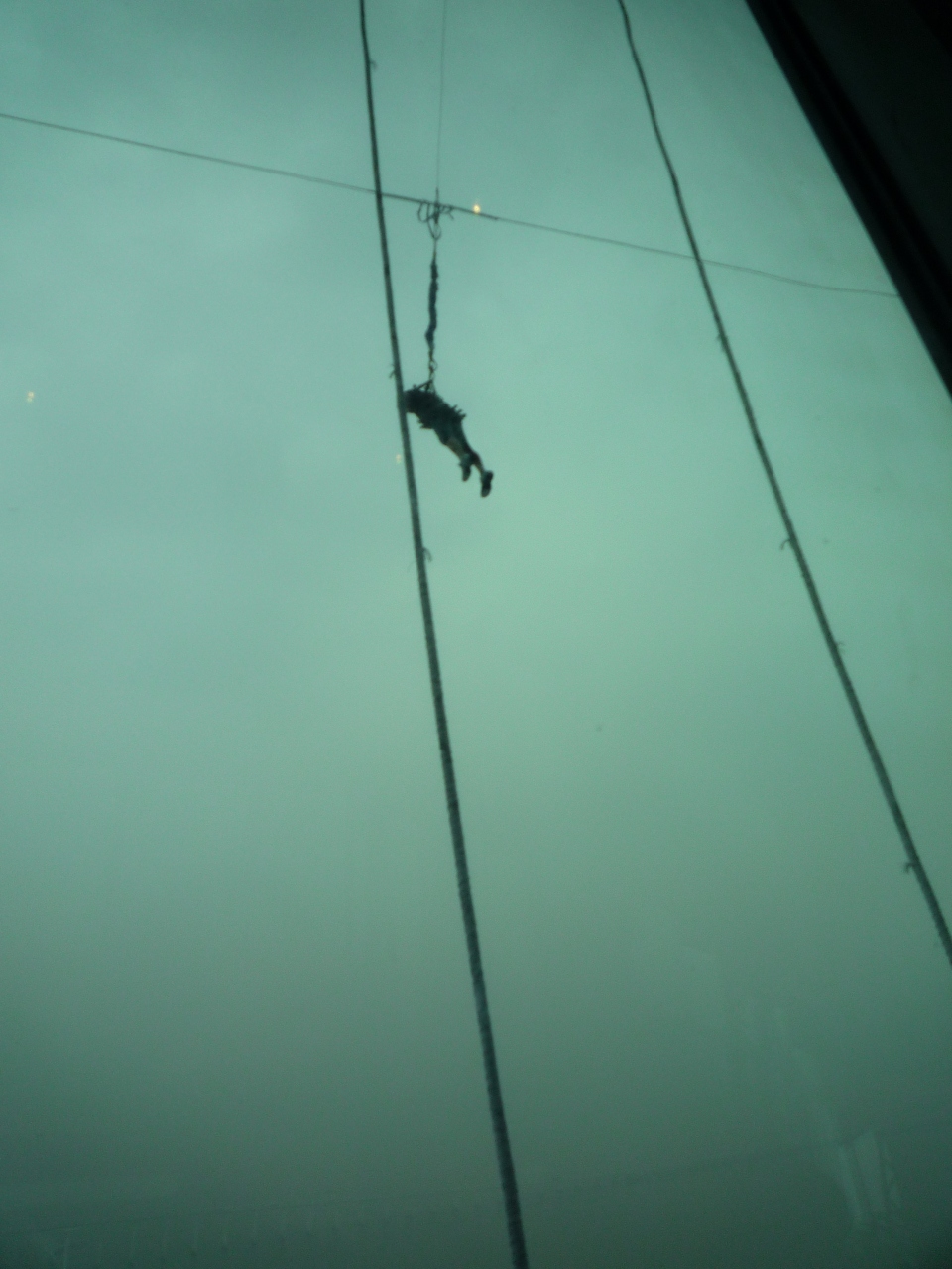 バンジーする人の近くのガラスには人だかり、一瞬にして目の前を降りていくのですが、見ているこちらがドキドキ。