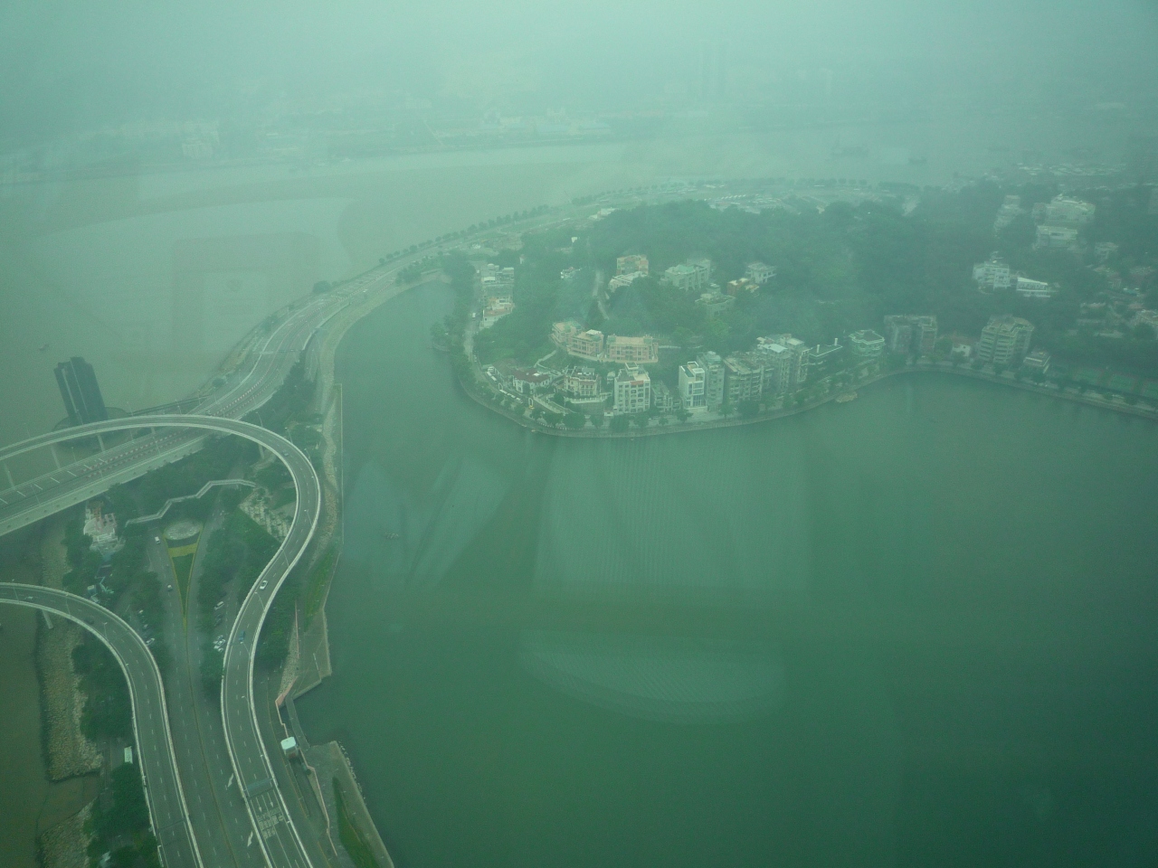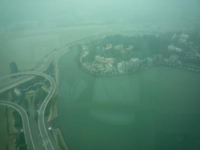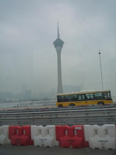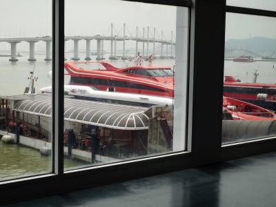 香港国際空港からターボジェットでマカオフェリーターミナルに着岸する前に見えるマカオタワー。
