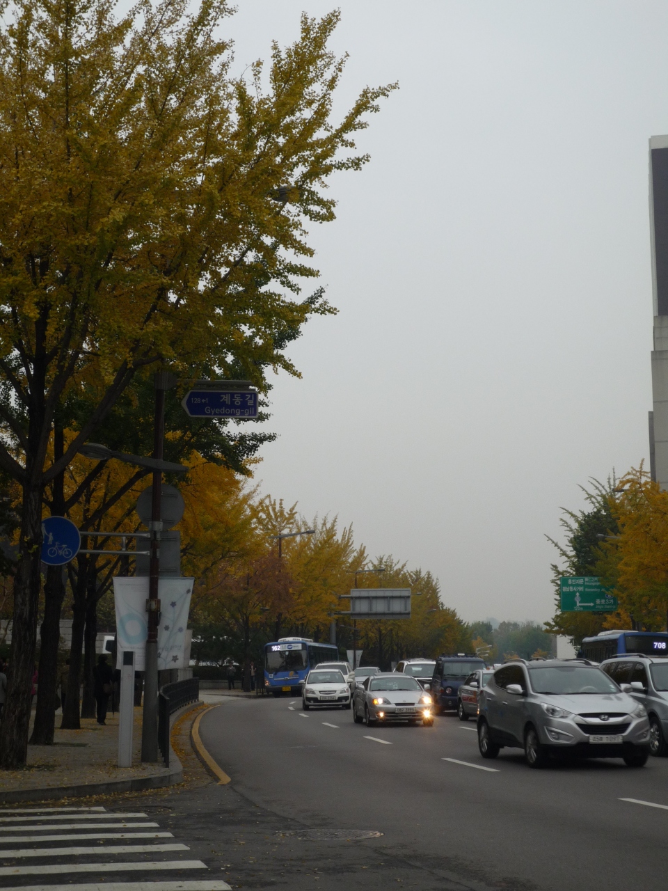 地下鉄安国駅からあがると、いちょうの並木道が。