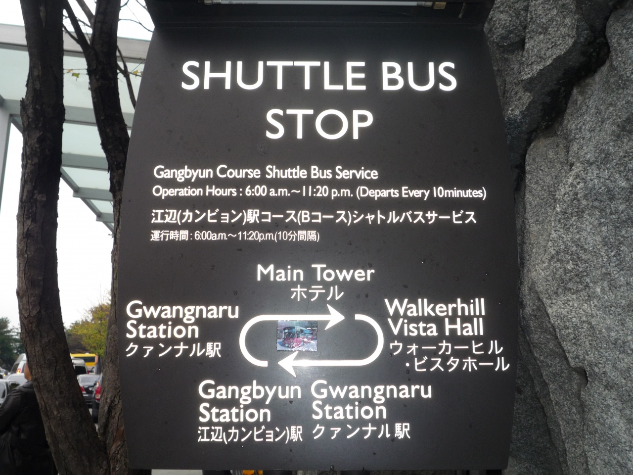 地下鉄5号線:クワンナル駅、2号線:カンピョン駅をまわるウォーカーヒルバス(無料)があるので苦にはなりませんでした。