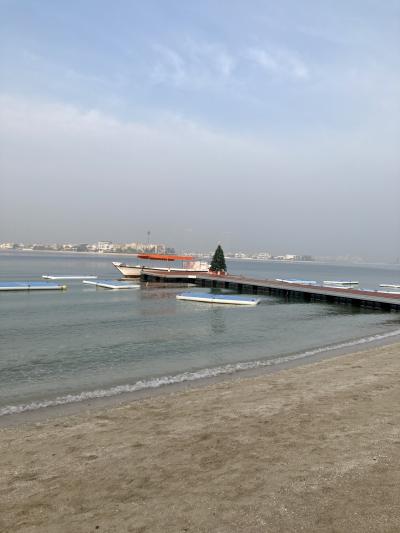 プライベートビーチはホテルから歩いて5分ほど離れている。パームジュメイラの内側に位置するので波も穏やかで静か