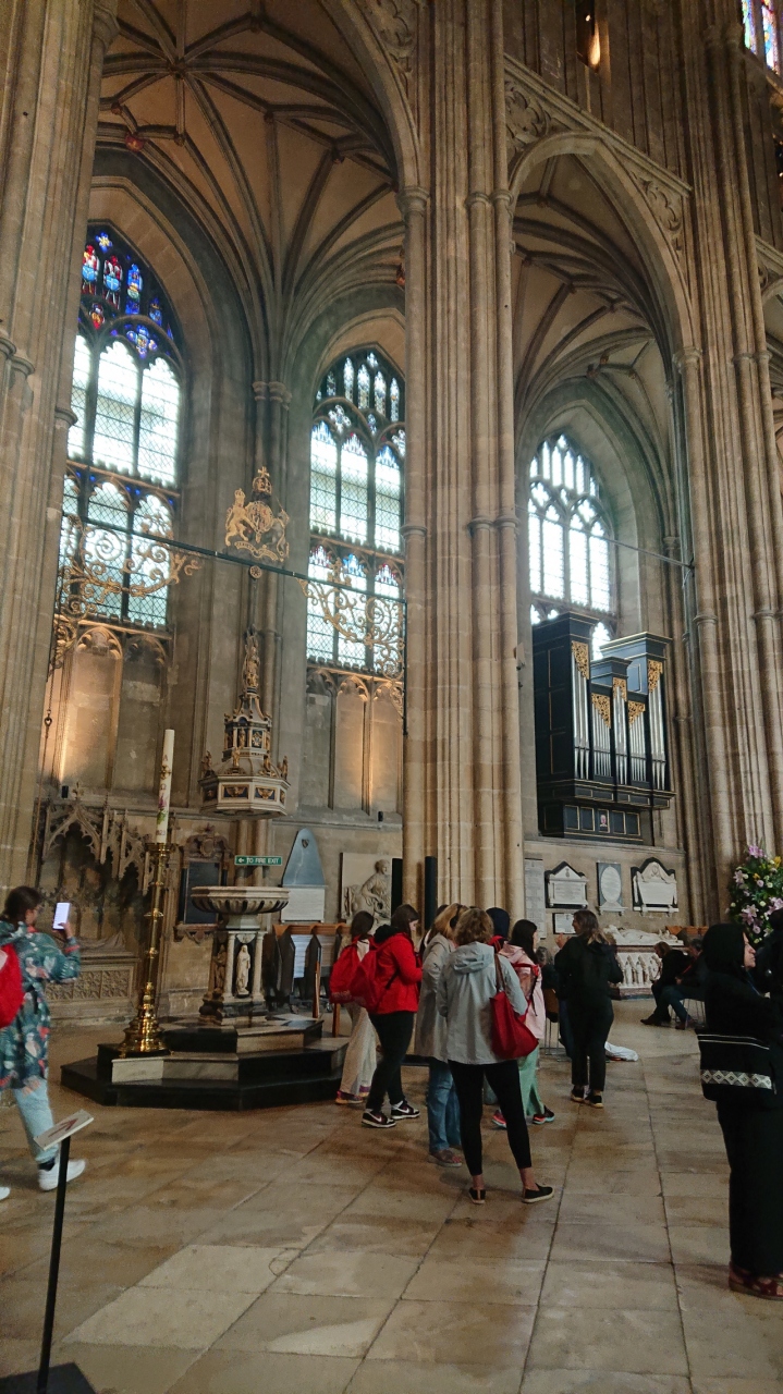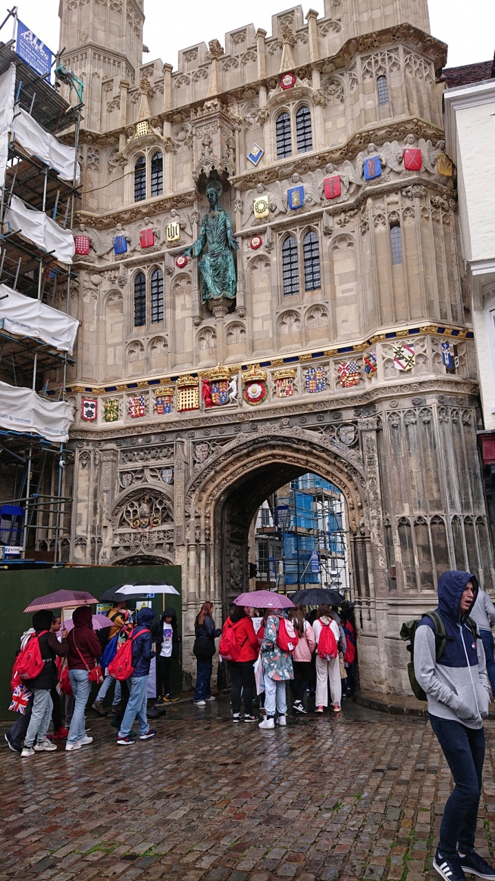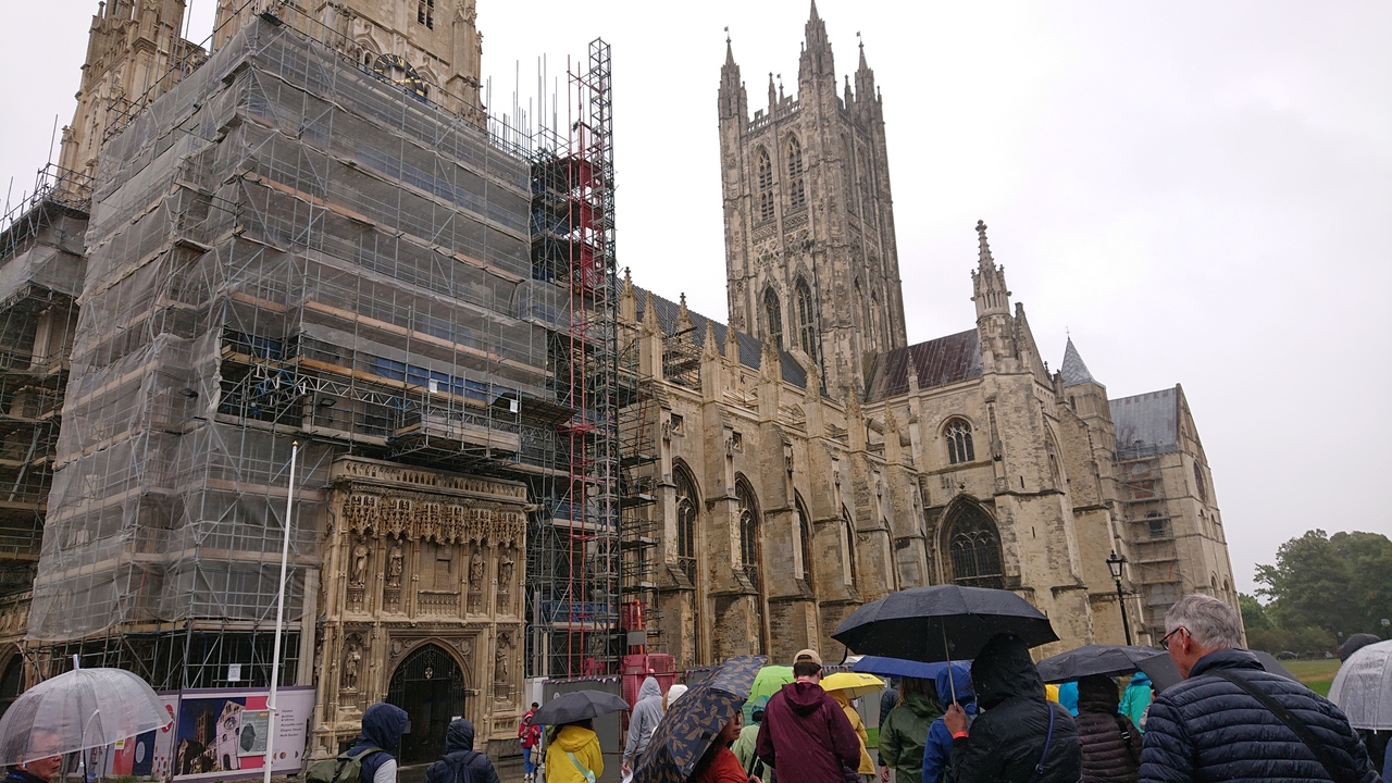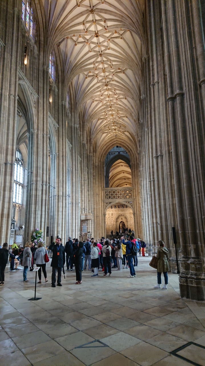 30年前に独りで来ました。今回は、ロンドンからの日帰りツアーです。7世紀に修道院が出来、1130年に大聖堂が出来た。その後、聖地巡礼の場所となる。宿で様々な所から来た人の話を纏めたのが、有名なチョーサー著の「カンタベリー物語」である。1174年火事になる。1503年に完成。世界遺産である。外観は一分補修中だったのが残念。中は、とても素晴らしい。ステンドグラス、天井のアーチ等。大聖堂手前の入口の門も雰囲気が少し異なる趣の有る建築物である。