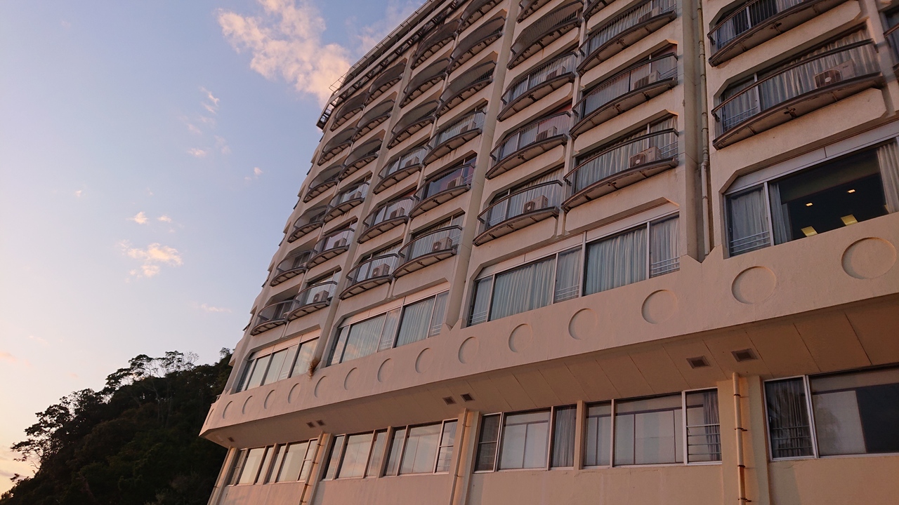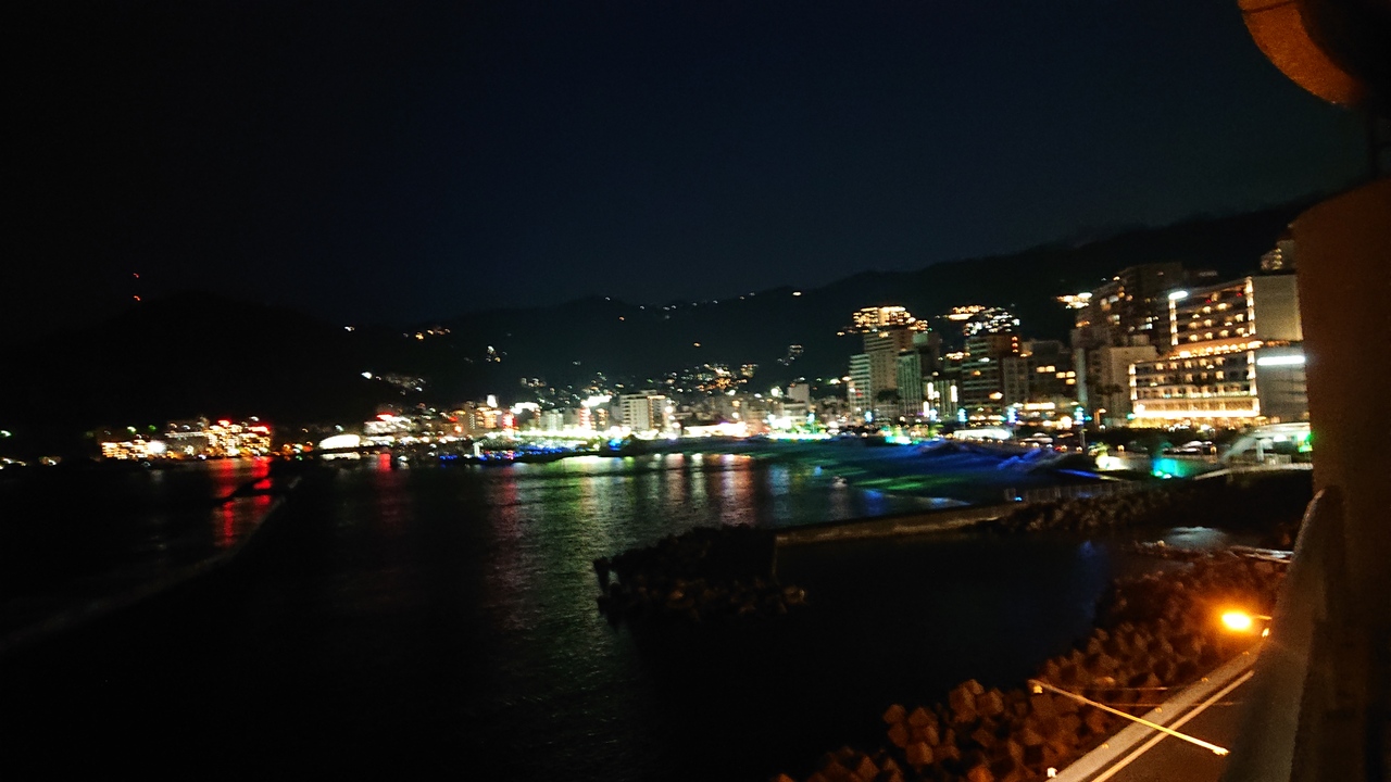 家内が左脇腹が痛く、病院も廻りましたが、痛みが治まらない。10数年前に膝が痛くてこちらの温泉に入ったら良くなりました。熱海の駅から行きは下り坂を下りて、徒歩10分程度、バスだと3個目の「大学病院前」下車徒歩3分。マンションとホテル同居型です。7階に駐車場、レストラン、6階~1階が部屋、階段下りて地下1階に大浴場。露天風呂は有りません。源泉温度は70度前後、加水しないと入れません。塩分多く、温まります。ホテル部屋内の内風呂も温泉。チェックインしたら、お湯を貯めます。少しでも冷まします。加水する量を少しでも減らし、源泉を濃くして入ります。ホテル共用部にコインランドリー、自動販売機、電子レンジが有ります。7階のフロント前から外に出て、下り坂を降りてローソンが在ります。帰りは上りです。必要な物は熱海駅前のファミリーマートで事前に購入するのをお薦めします。ローソン、サンビーチ迄行くとセブンイレブン、銀座迄行くとファミリーマートが在ります。帰りの登りがきつい人はバスと言う手段も在ります。部屋はツイン、和洋室が有ります。部屋からは初島、熱海城、後楽園ホテル、ニューアカオが見えます。景色は良いです。築40年以上のホテルなので古いです。壁が薄いので、隣の音は少し聞こえるかな。値段も安い、景色が良い、温泉が良いので、その前提が理解出来る方は良いと思います。