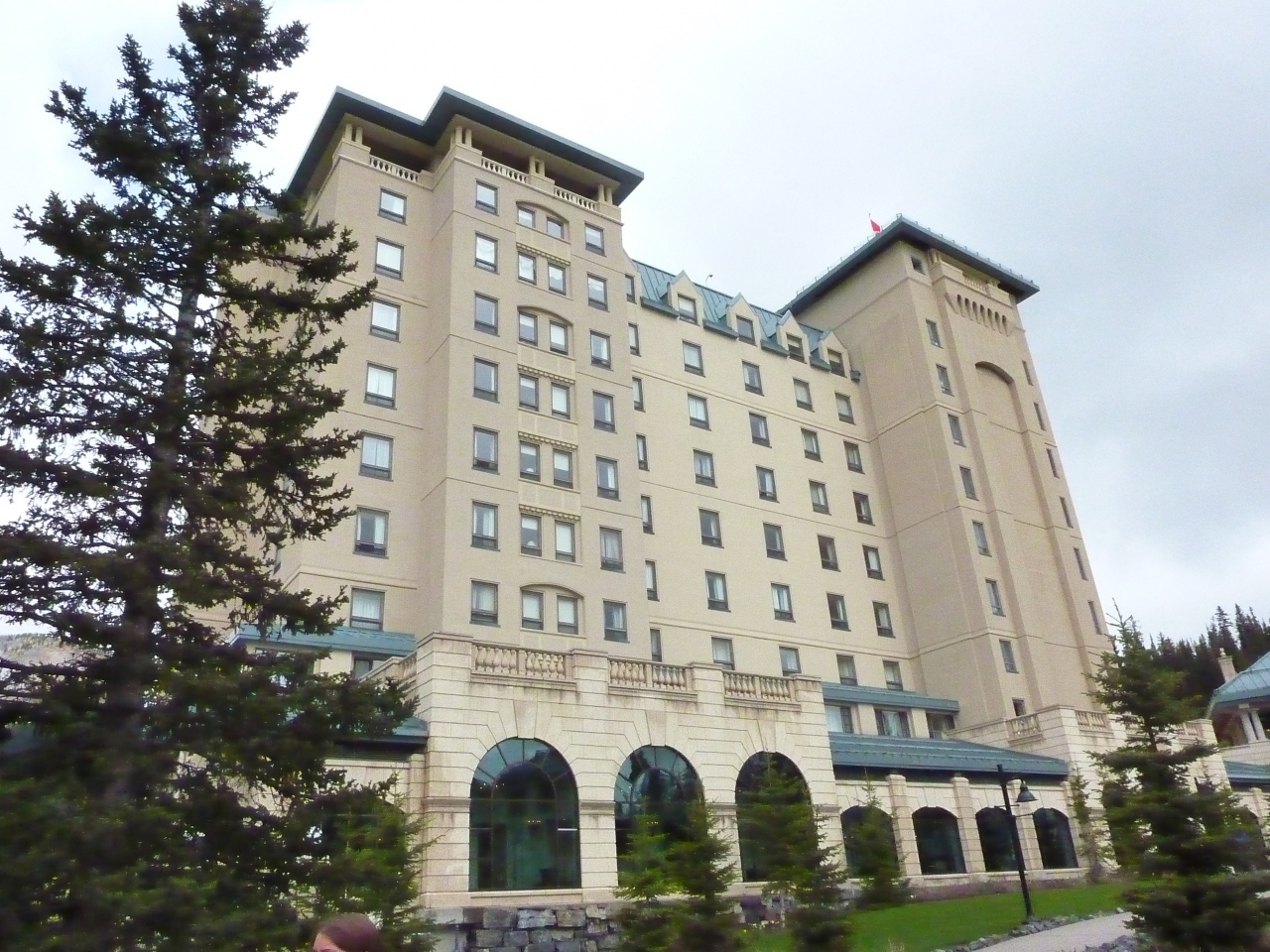 ルイーズ湖畔にある洒落たホテルです。1階のラウンジから湖が綺麗なのですが、工事中でした。バンフからバスで40分くらいかかり、過密日程だと厳しいです。カナダを数箇所廻るツアーでレイクルイーズに宿泊するのであれば、最低、バンフ2泊、レイクルイーズ1泊が必要です。1泊、1泊ですと、バンフの自由行動時間が殆ど取れません。