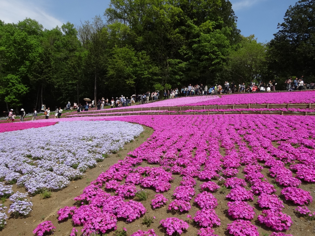 5月 4日に二歳の孫と娘夫婦、家内の5人で行きました。行きは、所沢からレッドアローで一つ手前の横瀬で下車。徒歩20分程です。入園料は300円です。芝桜はほぼ満開で綺麗でした。お昼がかなり混んでいて並んでおりました。帰りは、100円タクシーでシャトルバス乗り場まで行き、無料シャトルバスで秩父鉄道の秩父駅に行き、お土産屋を視察。一駅秩父鉄道に乗り、お花畑下車、徒歩五分で西武秩父駅に戻りました。シャトルバスは、西武秩父駅には行きませんのでご注意下さい。