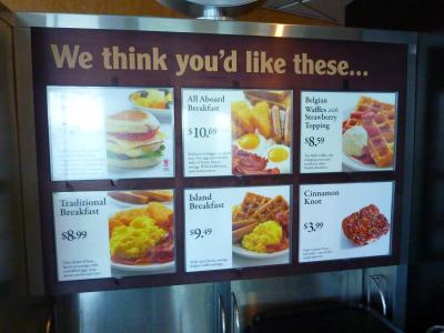食事ですが、フェリーの中で朝食、昼食、夕食でメニューが変わります。夕食はテリヤキチキンボール(丼)を食べました。醤油味がかなり濃かったです。