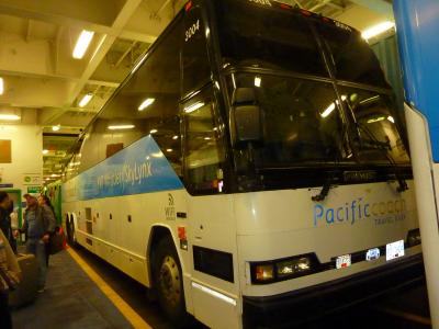 バンクーバーで一日自由時間がありましたので、ビクトリアに20年振りに日帰りで行きました。フェアモントホテルを朝6時50分に出、タクシーでバスディーポへ。7時30分発のパシフィック・コーチ・ラインのクロスウォーターを利用しました。乗客が少し多かったのと、窓口が一つしかありませんでしたので、切符購入に思ったより時間がかかりました。