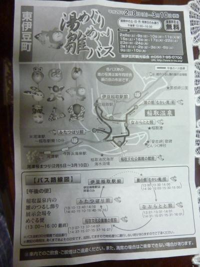 - 3/10迄の土日月祝日のみ無料シャトルバスが出ていますが、伊豆稲取駅は降車専用です