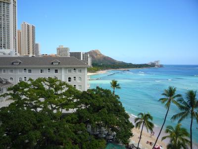 娘夫婦の結婚式参列で、初めてハワイに行きました。ホテル指定でしたが、安いプランで眺望指定なしでしたので、当然、道路側の部屋でした。家内がトイレが陶器で冷たく、嫌だということもあり、フロントと交渉し、オーシャンフロント部屋に差額を払って、交換しました。ホテル内で食事は取りませんでしたが、目の前はワイキキの海で、バルコニーに出て、左を見れば、ダイヤモンドヘッドも見え、満足です。娘夫婦は、主役ですので、タワーの上層階で眺めは最高です。写真は娘の部屋のバルコニーから撮影したものです。また、泊まりたいです。