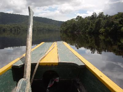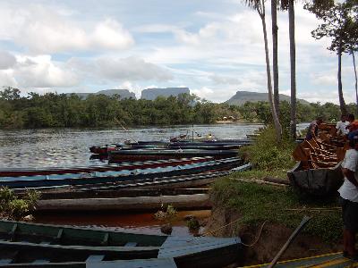 カナイマからサルトアンヘルまでは普通こんな船で川を登ります。いろいろな...