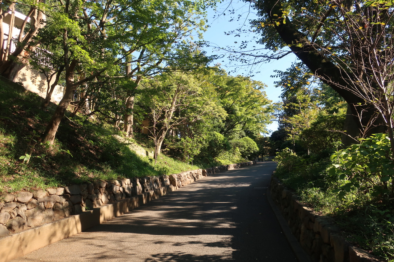 下まで降りてしまうと、日本庭園もあったのかもしれませんが、カメラに建物が入り切るくらいの場所まだで、階段を降りるのをやめてしまいました。
