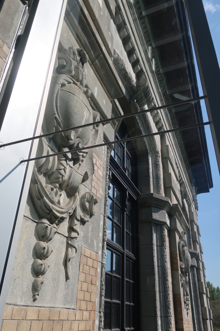 外観の美しい彫刻を間近な観られる踊り場もあります。