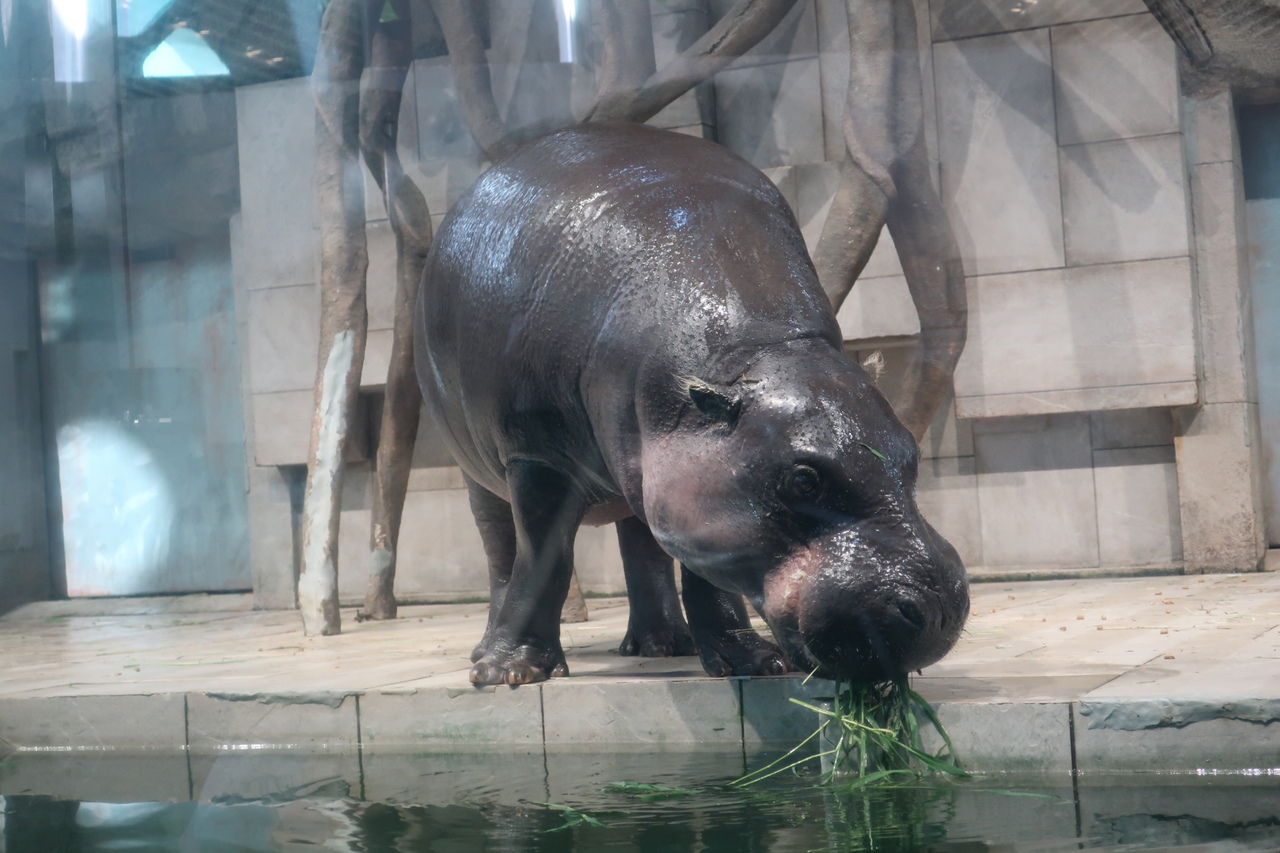 ミニカバの赤ちゃんは生後一年たっていたので、親とあまり変わらない大きさになっていました。