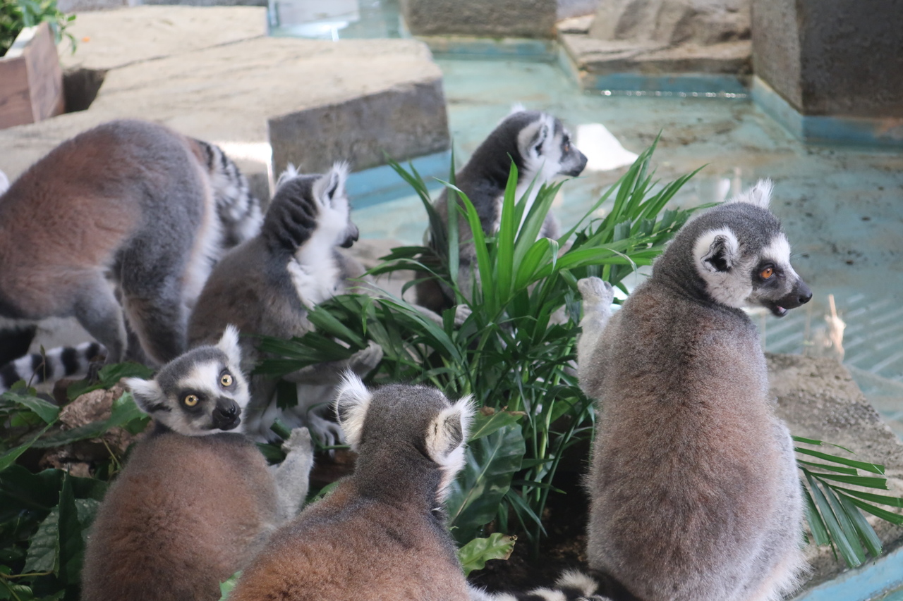ワオキツネザルは丁度もぐもぐタイムで、集まってお食事する姿が可愛らしかったです。