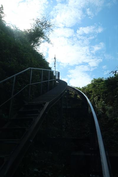 斜め上に上がる、座れるエレベーターといった雰囲気でしたが、モノレールだったんですね。