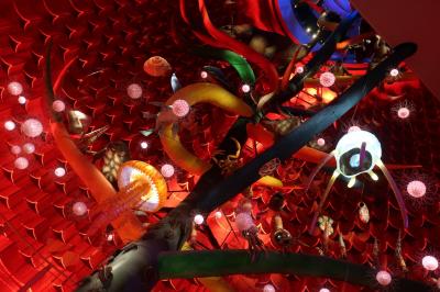 太陽の塔の内部は、『生命の樹』が地上から上層部にかけて伸びており、アンモナイトからクロマニヨン人まで、生物の進化を表現しています。