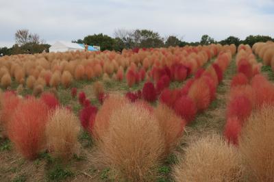 コスモスの丘には、コキアもプラスされていて、秋の風情が楽しめますが、コキアは真っ赤なものが少なく、まんまるなものも少なくて、少し残念でした。- 旅行時期