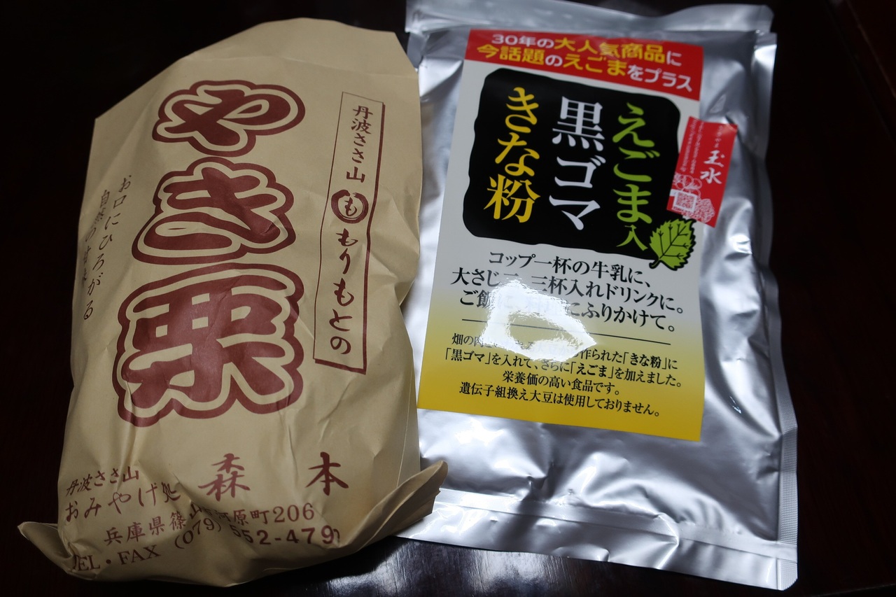 焼き栗と、黒豆パン、黒豆黄な粉などを