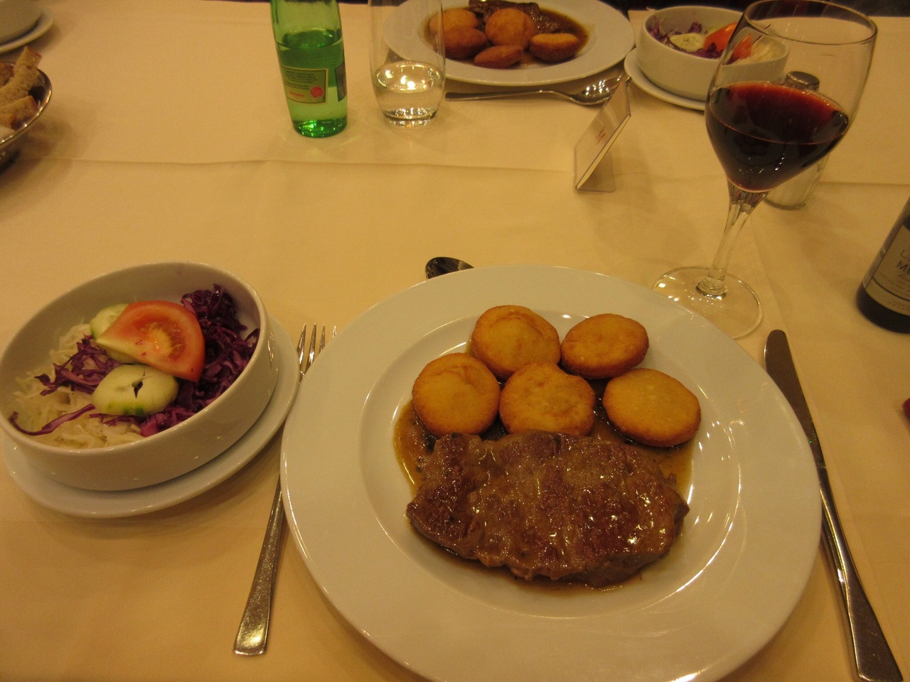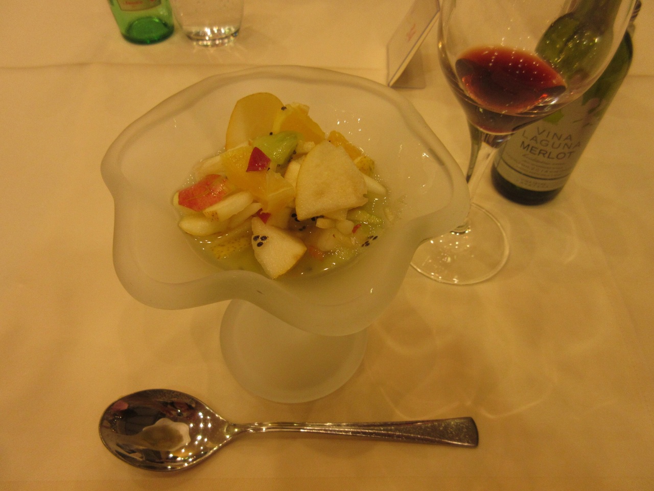 牛肉のステーキ、フルーツカクテル