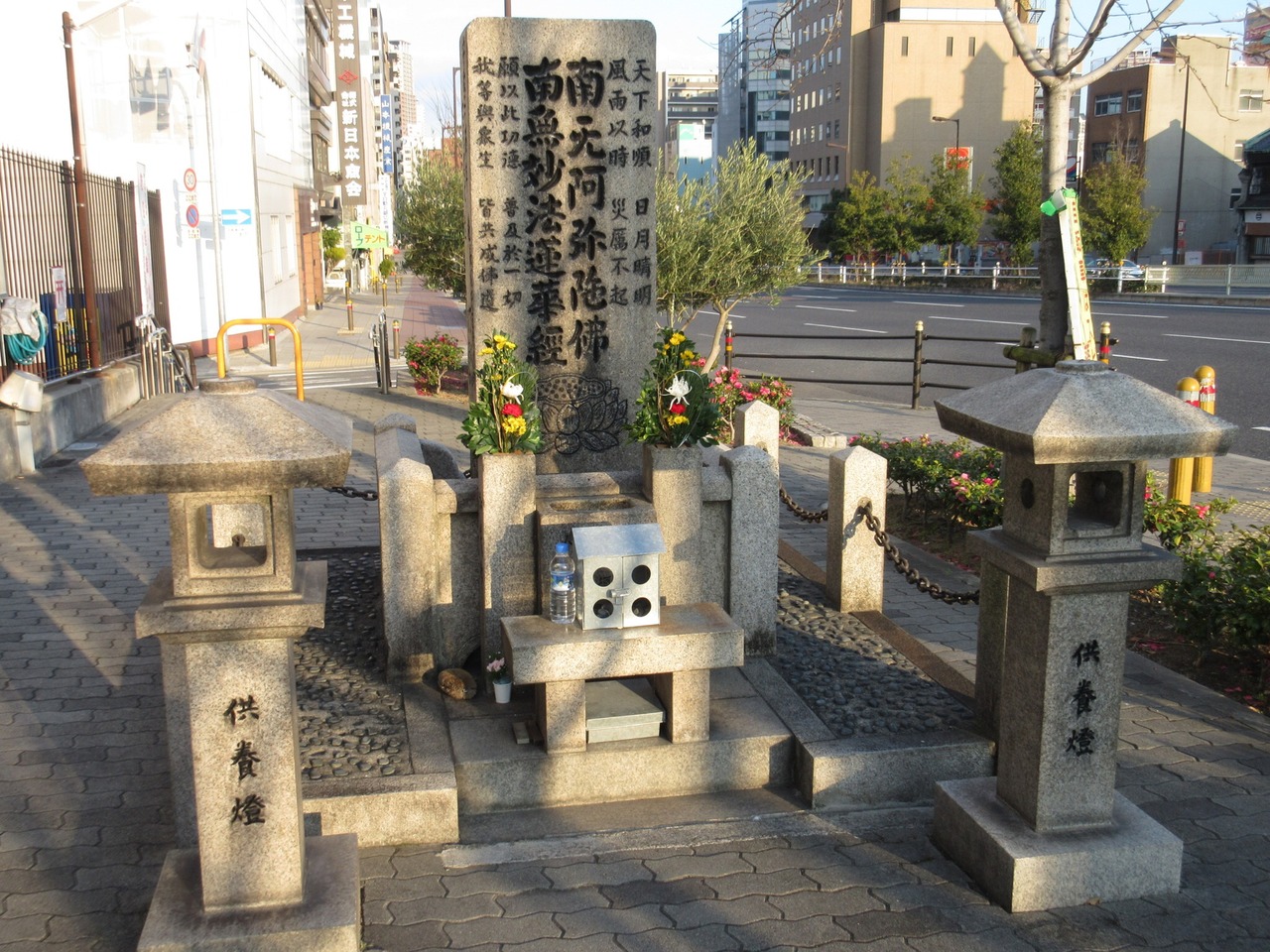 大きな松の木の根元に、「武蔵坊弁慶之墓」と