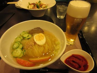 盛岡冷麺と生ビールは初摘みホップ遠野の